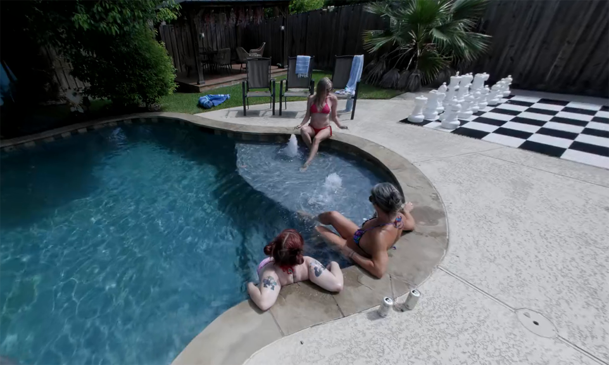 You are the photographer's assistant, holding the reflector for a sexy photoshoot with Sierra Spunk. Her friends Busty Bexx and Athena West are watching on as she takes off her top and lets those perky nipples free. They can't help but notice the effect it has on you behind the reflector. You try to hide it, but they want it out! They proceed to give you a triple blowjob right beside the pool!
